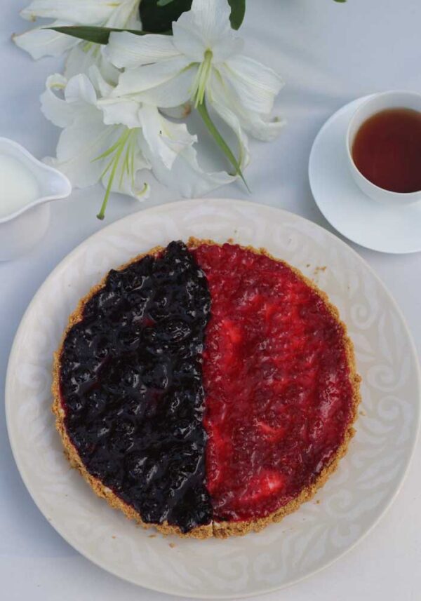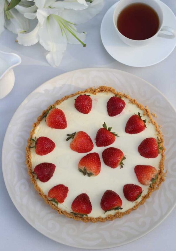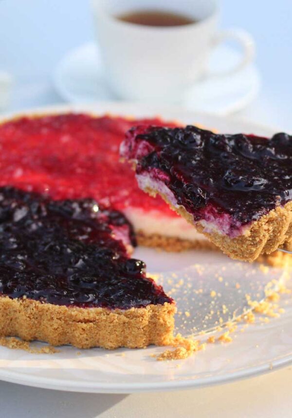 It is made with Quark or Greek yogurt, a sweet crust, and a hint of lemon. It’s easy to make and always a big hit!