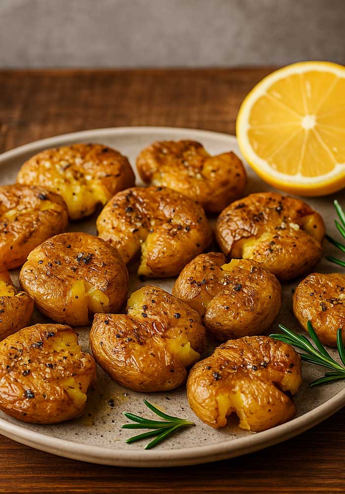 Irresistible side dish that complements almost all main dishes. Each potato is lightly smashed and tossed in olive oil, garlic, sea salt and perfected with fresh parsley.