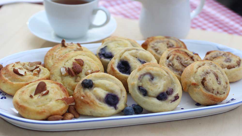 | Filling | Custard and sliced almonds, Custard and blueberries, Cinnamon and raisins |