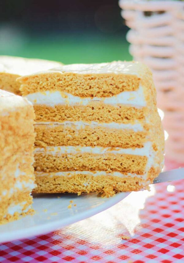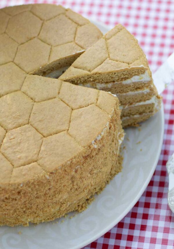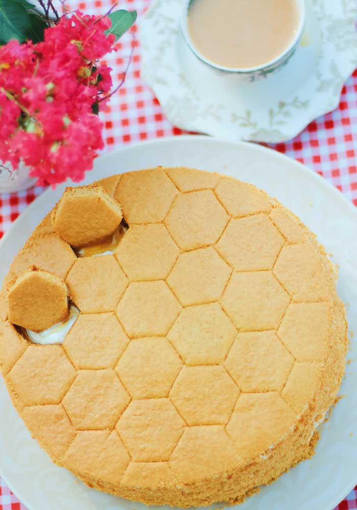 Absolutely heavenly. Honey infused layer cake with creamy frosting and drizzled with butterscotch crumbs topped with either a layer of cream or layer of honey cone.